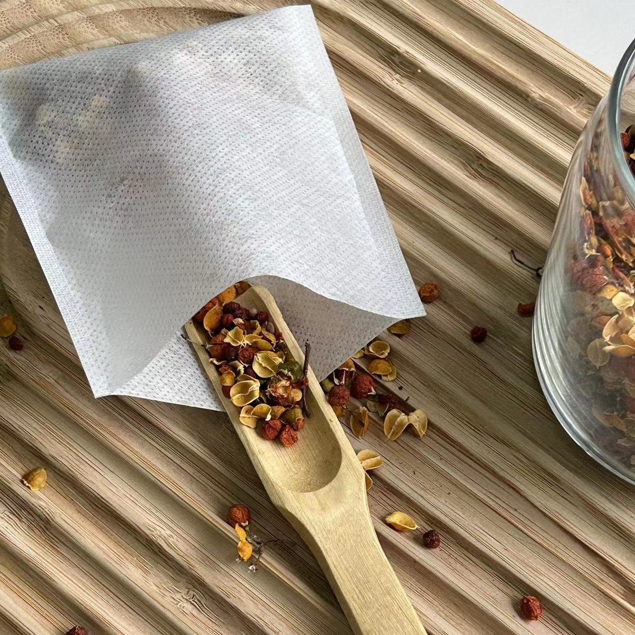 PLA -majsfibernät tomt tepåse är lämplig för bladte, men inte för pulverte. Priset är måttligt och kan vara helt nedbrytbart, vilket också kan tätas med värmesälare.